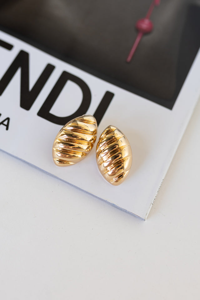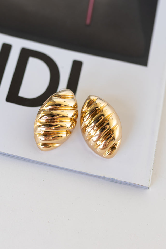 Oval shaped earringsPost backingSwirl designGold platedMeasures 1.25 inches longAll earrings are considered final sale.